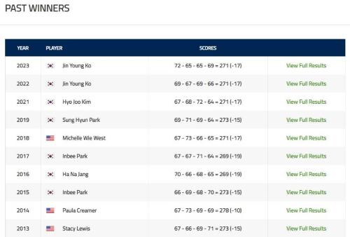 HSBC 위민스 월드챔피언쉽 역대 우승자, LPGA 공식홈페이지 캡쳐