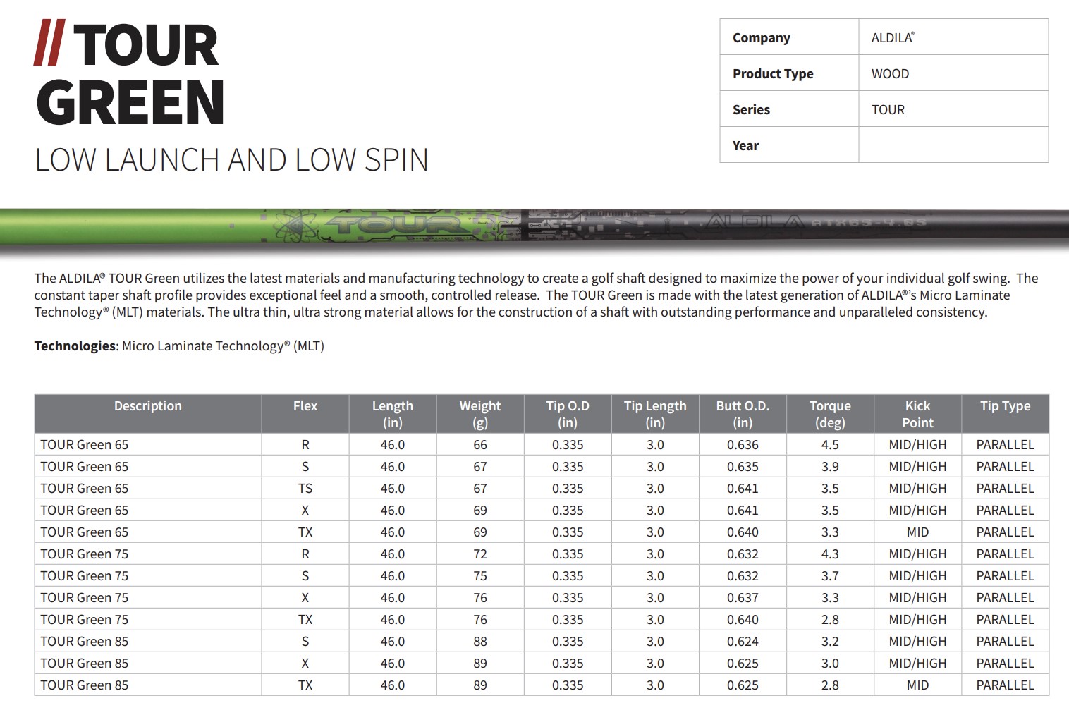 존 람은 알딜라 투어 그린 샤프트를 사용하는데요, 한국 아마추어 사이에서는 벤투스나 텐세이 샤프트가 대중적이라 상대적으로 찾아보기 쉽지 않은 것 같습니다. 투어 모델이라서 그런지 65그람대 샤프트부터 시작되네요.