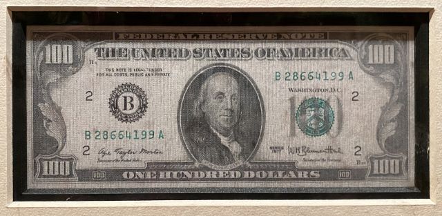 내기에서 이겨서 받았던 100달러 지폐와 당시에 토너먼트선수협회 이름으로 발행한 1달러 수표가 클럽하우스에 전시돼 있습니다.