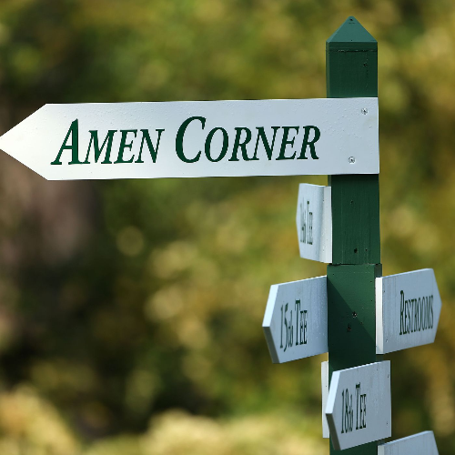 마스터스 토너먼트가 열리는 어거스타내셔널 코스의 11번 홀부터 13번 홀까지를 아멘 코너(Amen Corner)라고 부릅니다. 이 3홀은 개울로 연결이 되어있습니다. 이름의 유래는 아마도 어렵다 보니 공이 잘 날아가길 기도한다는 뜻이겠지요?