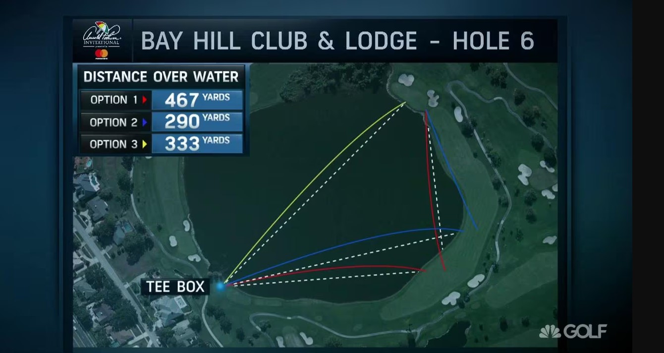 베이힐 & 롯지 클럽의 가장 유명한 홀은 아마 롯지 6번 홀이 아닐까요? 지난 대회에서 브라이슨 디셈보가 호수를 가로질러 티샷을 하는 장면이 화제가 되기도 했습니다.