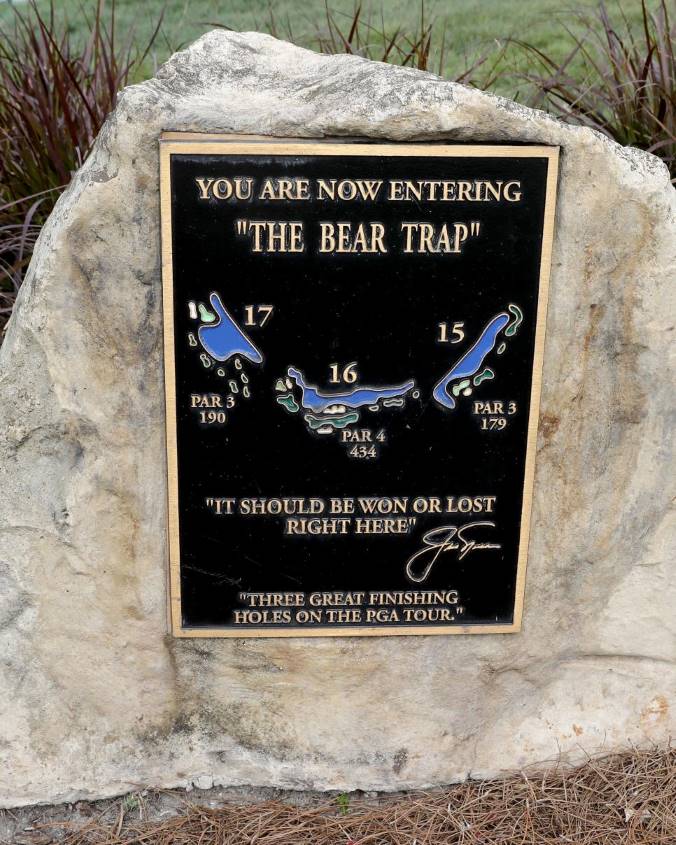 PGA내셔널 리조트 더 챔피언스 코스에는 유명한 곰형상의 동상이 있습니다. 바로 "The Bear Trap"으로 들어가는 것을 알리는 동상입니다. 더 베어 트랩은 더 챔피언스 코스의 15, 16, 17홀을 뜻합니다.